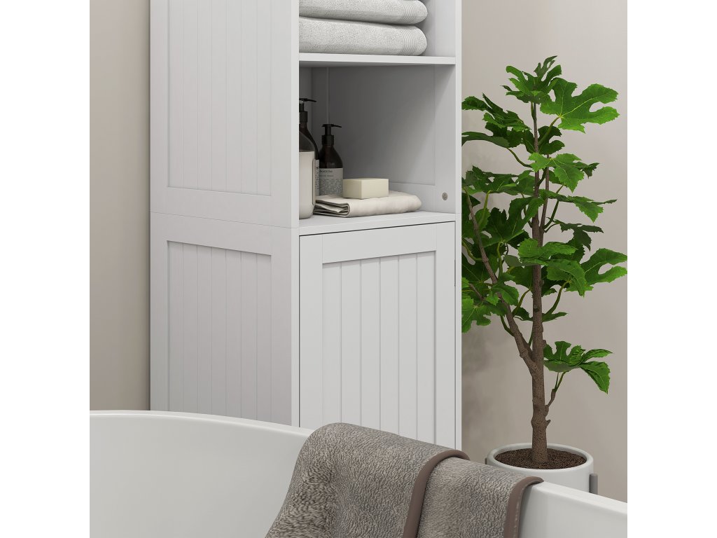 Tato úžasně praktická vysoká skříňka se jistě stane ozdobou vaší koupelny. Jednoduchá bílá koupelnová skříňka je vhodná do tradičních i moderních interiérů. Je vyrobena z vysoce kvalitní lakované dřevotřísky, která se vyznačuje mimořádnou robustností a stabilitou. Pro větší bezpečnost ji lze připevnit ke stěně pomocí zařízení proti překlopení. Díky výšce 160 cm skříňka dobře využívá prostor nad sebou.