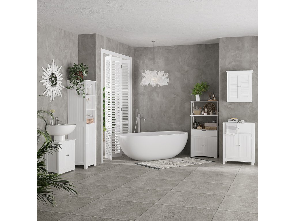 - Nadčasový design: Tato bílá koupelnová skříňka zaujme svými čistými liniemi a propracovaným designem