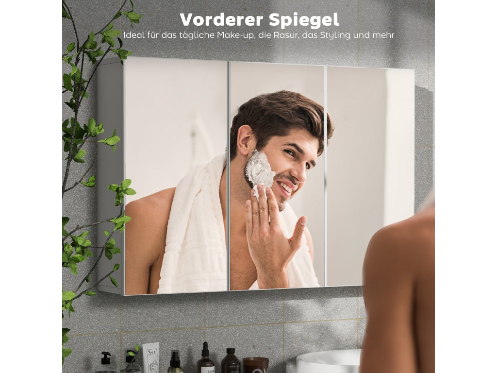 - Prostorný odraz: Díky třem zrcadlovým dvířkům zrcadlová skříňka nejen rozzáří váš pokoj, ale také zajistí osvěžující začátek vaší ranní rutiny a zajistí živý zážitek každý den