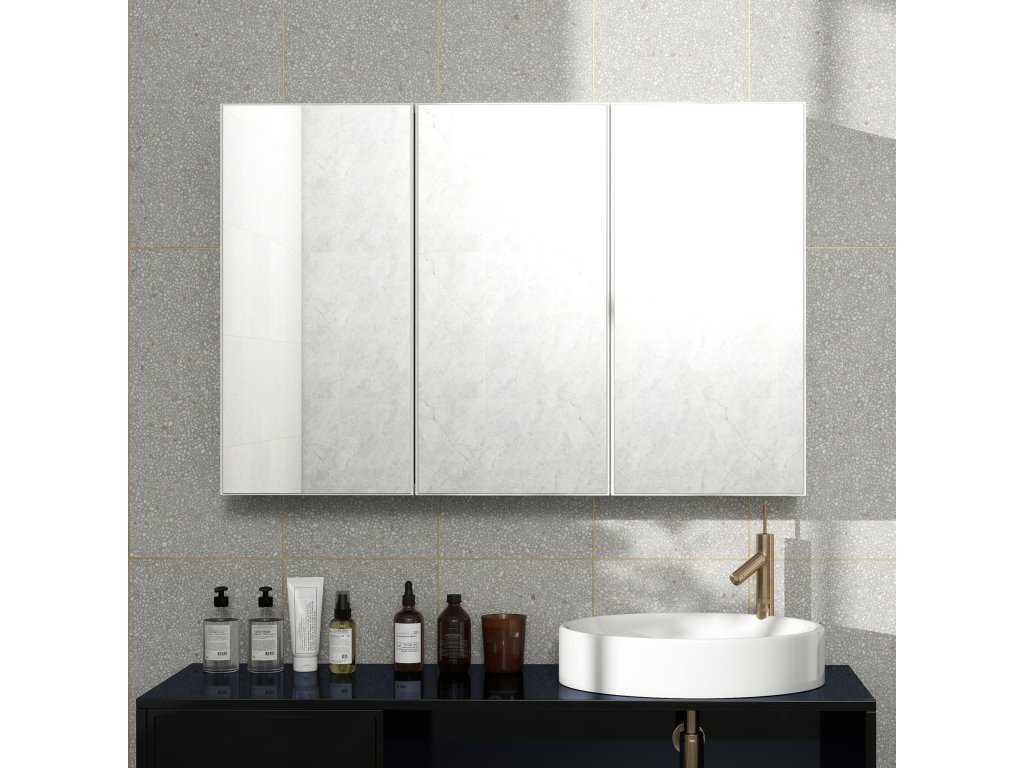 - ✔ Tři zrcadlové dveře úložné skříňky opticky zvětší vaši koupelnu a místnost se zdá být světlejší