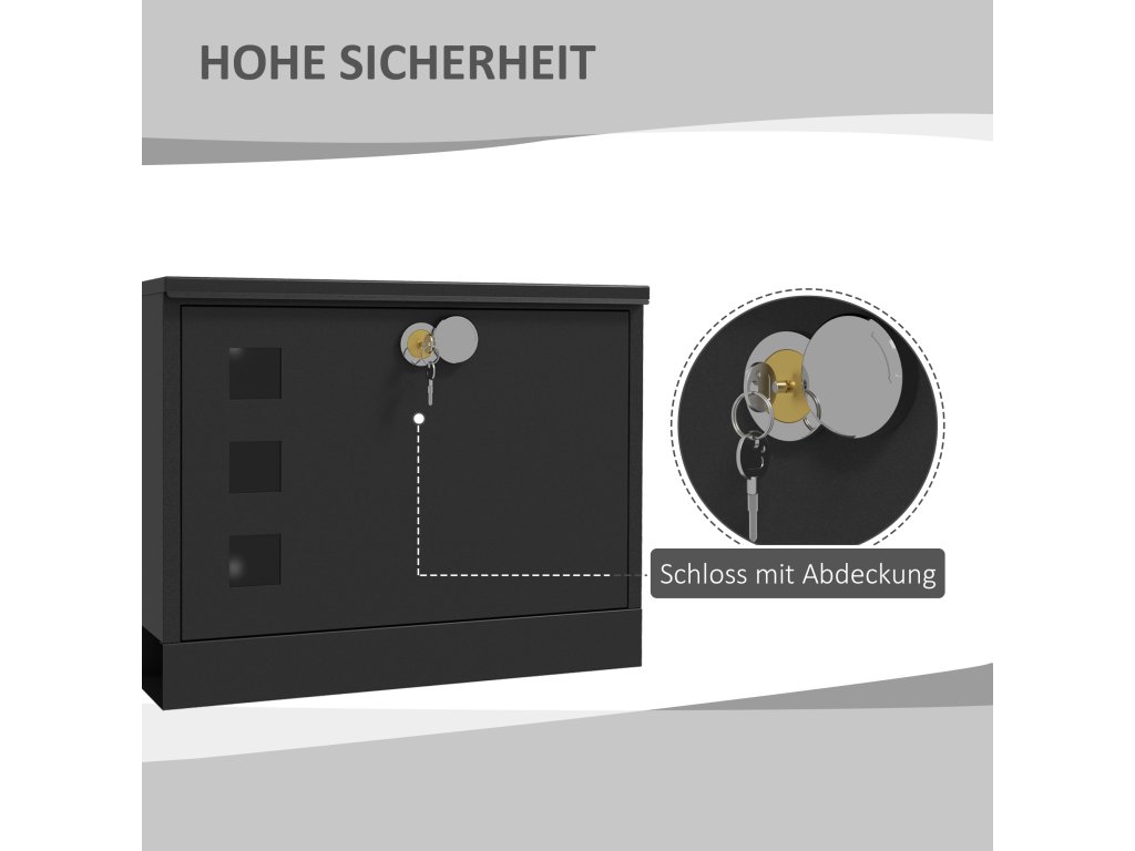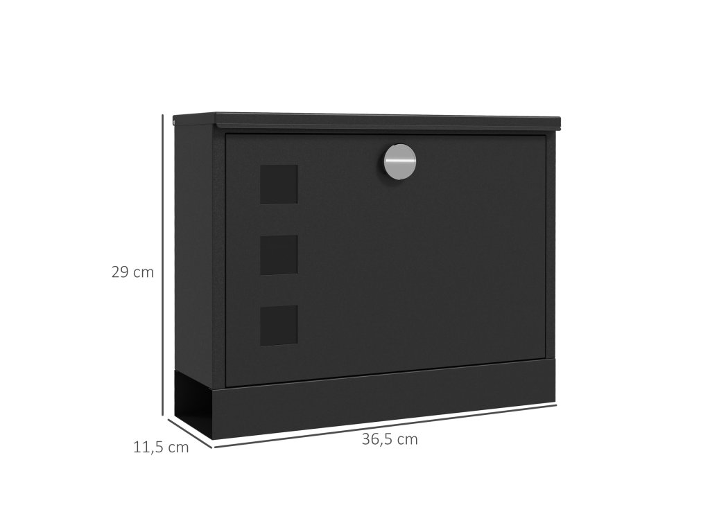 HOMCOM Kovová poštovní schránka, moderní, uzamykatelná, 36,5 x 11,5 x 29 cm, černá