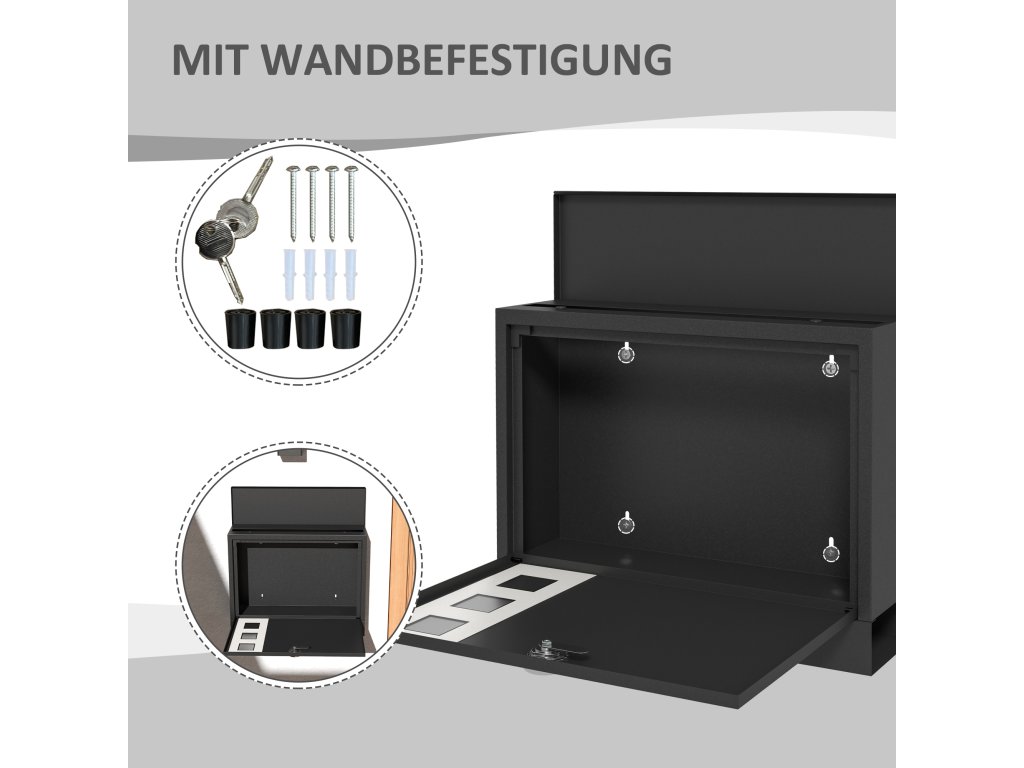- ✔ Velký úložný prostor uvnitř s 35 cm dlouhým otvorem, do kterého se snadno vejdou všechny poštovní zásilky