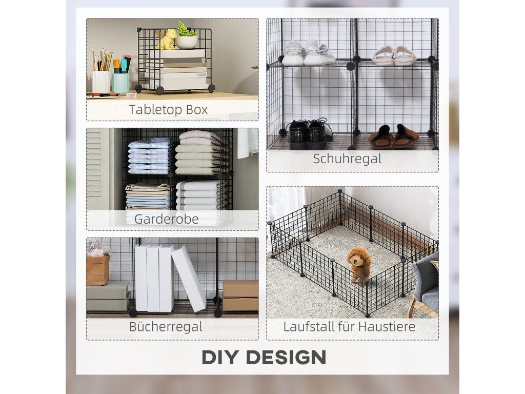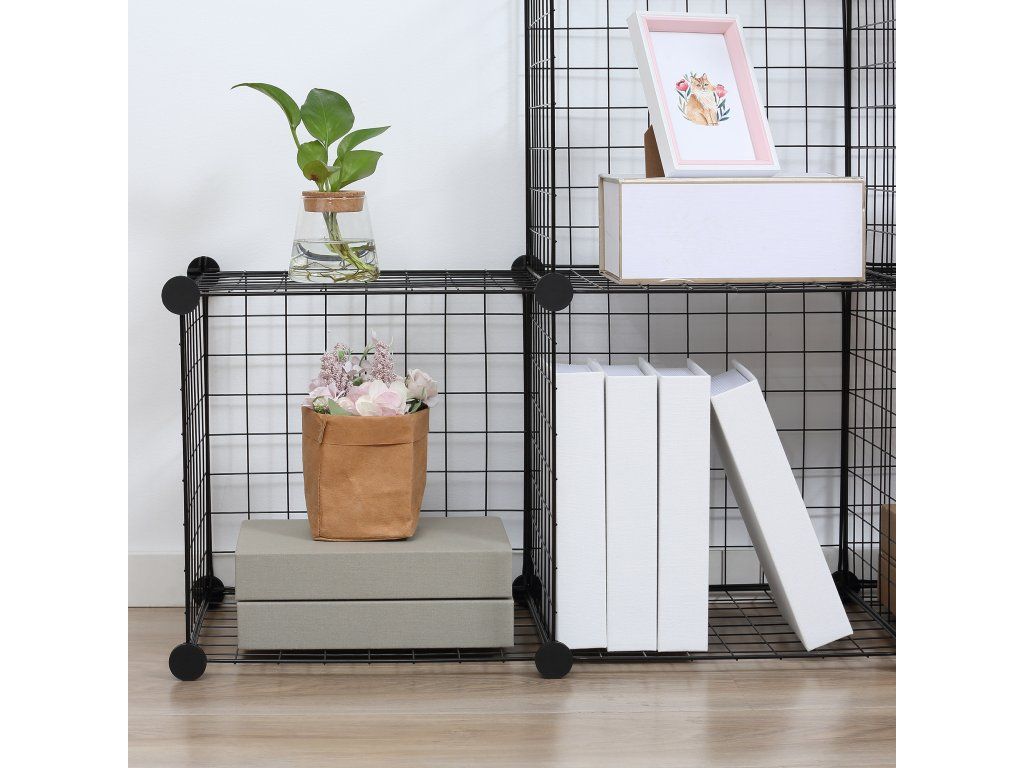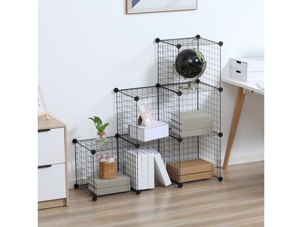 Přizpůsobte si svůj domov pomocí přizpůsobitelného regálu od společnosti HOMCOM. Stupňovitý regál vyrobený z robustního kovu unese až 30 kg a skládá se ze šesti flexibilních kostek, které lze přizpůsobit každé situaci v místnosti. Jsou bezpečně sestaveny pomocí ABS konektorů. Otevřená konstrukce kostek usnadňuje přístup ke knihám, hračkám, fotografiím a oblečení. Udržujte svůj domov stylově a prakticky uspořádaný.