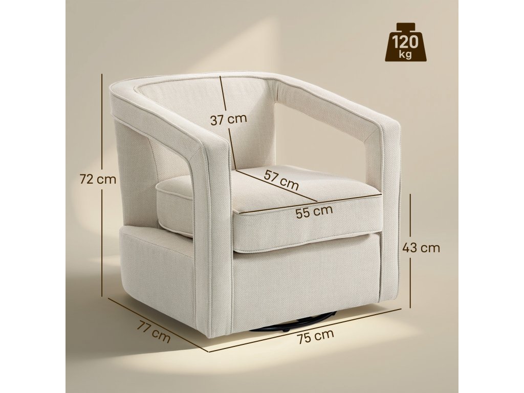 HOMCOM Křeslo do obývacího pokoje otočné o 360° Křeslo do obývacího pokoje Relaxační křeslo s jednodílným opěradlem a područkami 77 x 75 x 72 cm Béžová barva