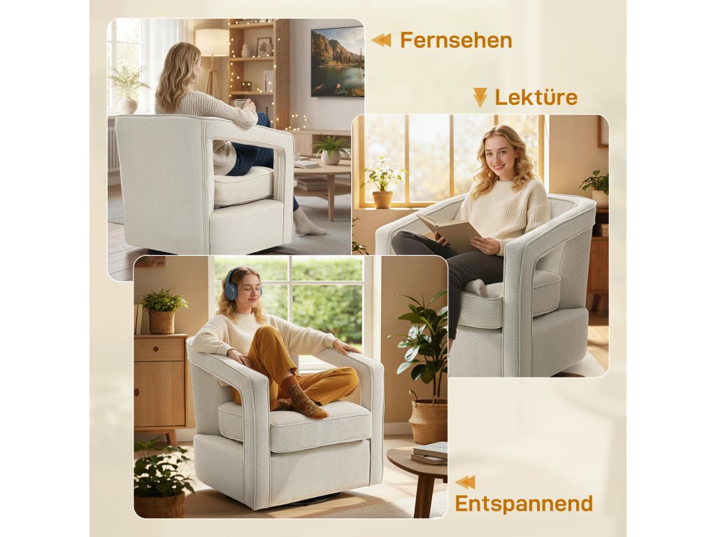 - Elegantní moderní design: Jemné neutrální barevné tóny a čisté linie se hodí k minimalistickému nebo modernímu stylu bydlení a vylepší váš interiér, ať už křeslo využijete jako akcent v prostoru pro čtení nebo na pracovním místě.
