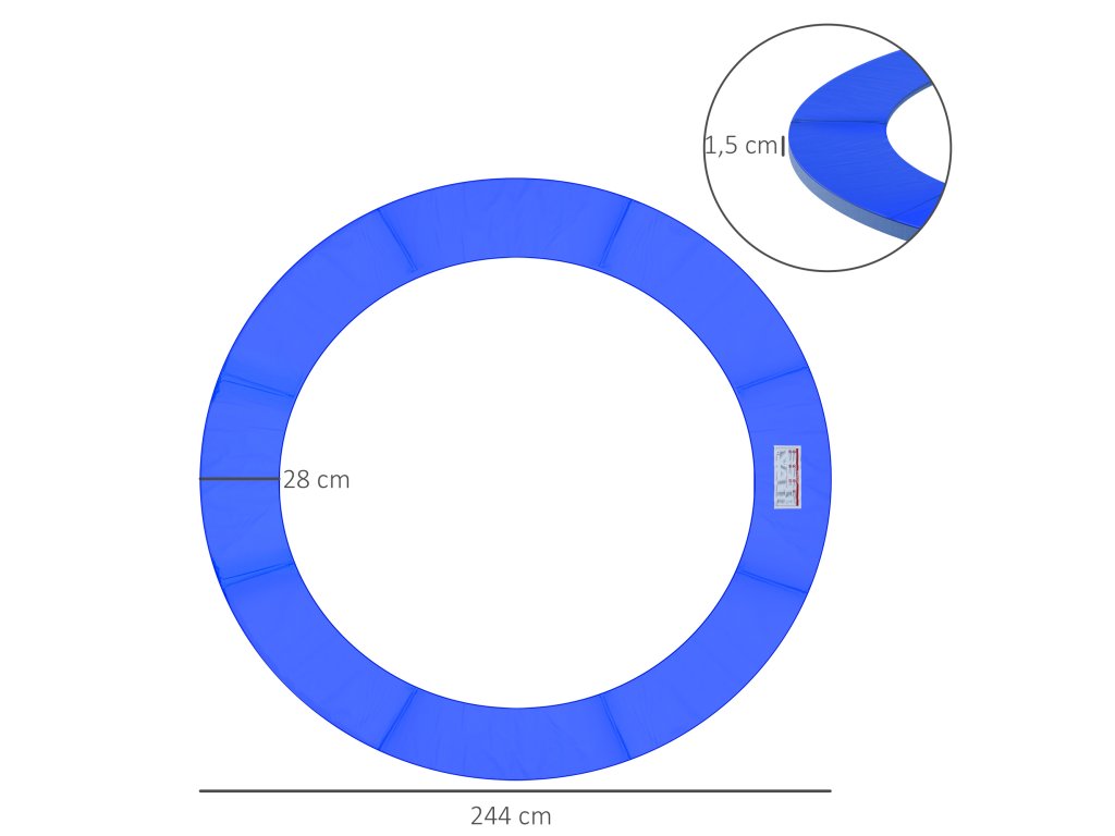 - Celkové rozměry: vnější průměr Ø244 cm, tloušťka polstrování 15 mm, materiál plast, PE.