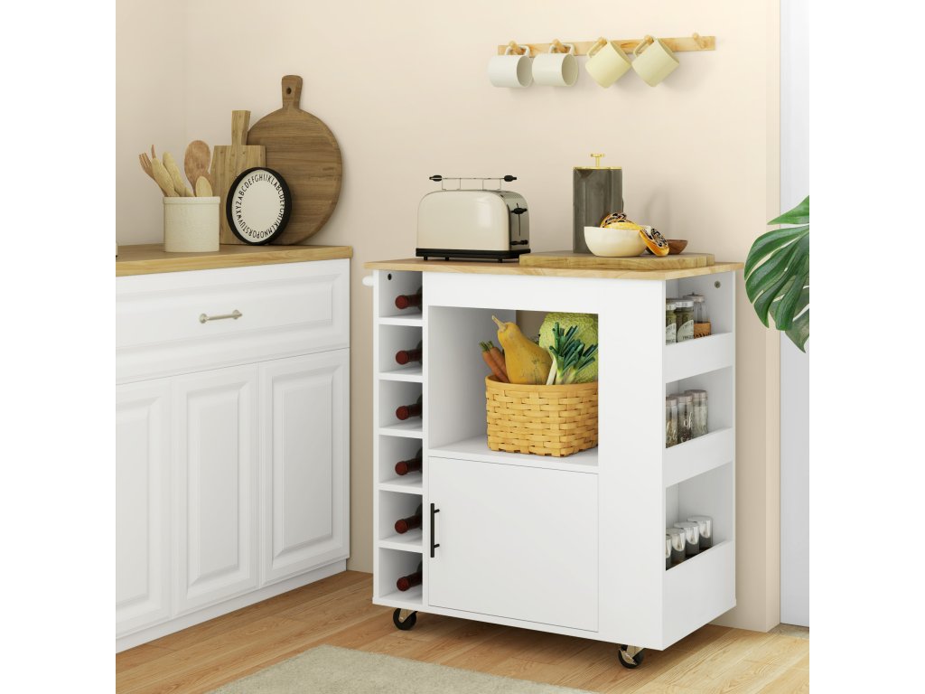 HOMCOM Kuchyňský vozík, pojízdný kuchyňský ostrůvek, kuchyňský vozík s přihrádkami, stojany na víno, skříňkou a pracovní deskou, bílý