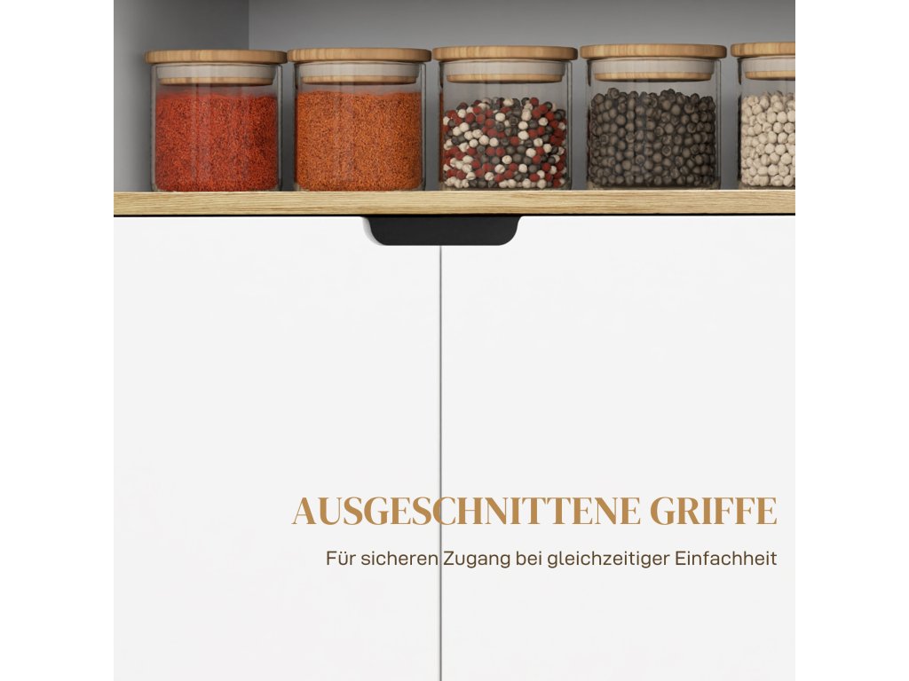 - Minimalistický design: Atraktivní barevná kombinace přírodního dřeva a bílé barvy se bez problémů hodí do různých stylů interiérů. Zapuštěná madla podtrhují jednoduchý design a zajišťují bezpečný přístup
