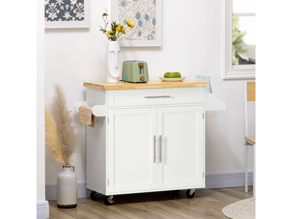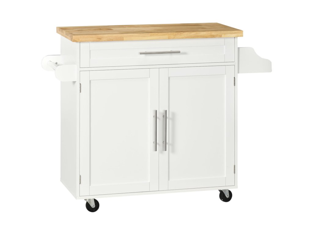 HOMCOM Kuchyňský vozík Servírovací vozík kuchyňský ostrůvek, 1 stojan na kořenky, 1 držák na ručníky, 109 cm x 40 cm x 89 cm, bílý
