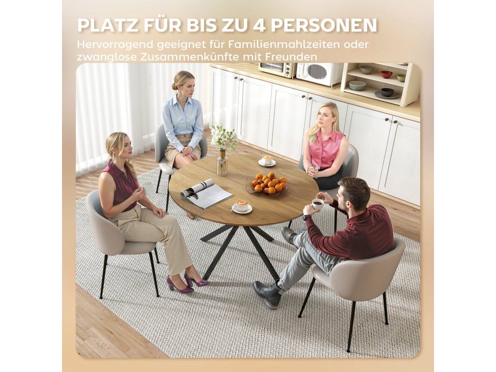 - ✔ Kulatý stůl o šířce 120 cm nabízí prostor pro čtyři osoby, což je ideální pro rodinné stolování