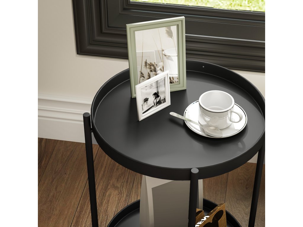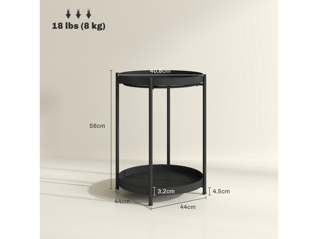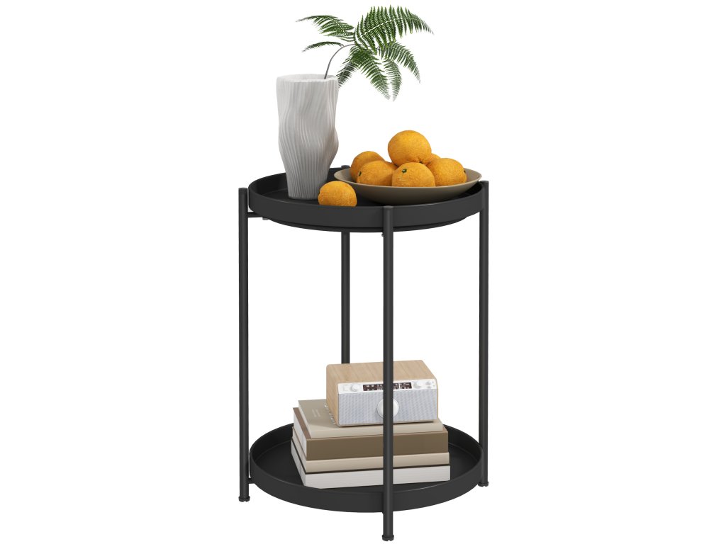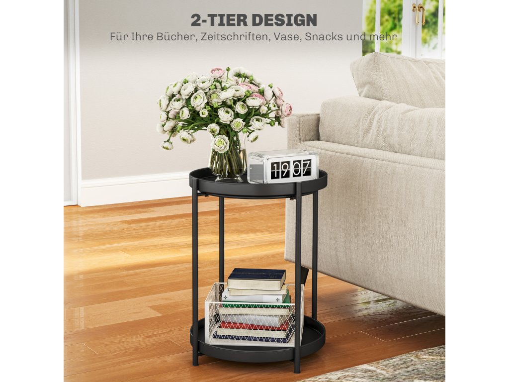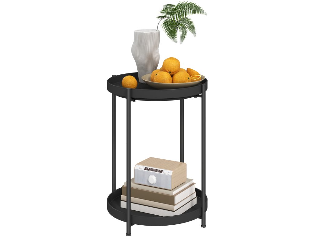 HOMCOM Kulatý odkládací stolek s policí, dvoupatrový konferenční stolek do obývacího pokoje, ložnice, malé místnosti, kov, černý