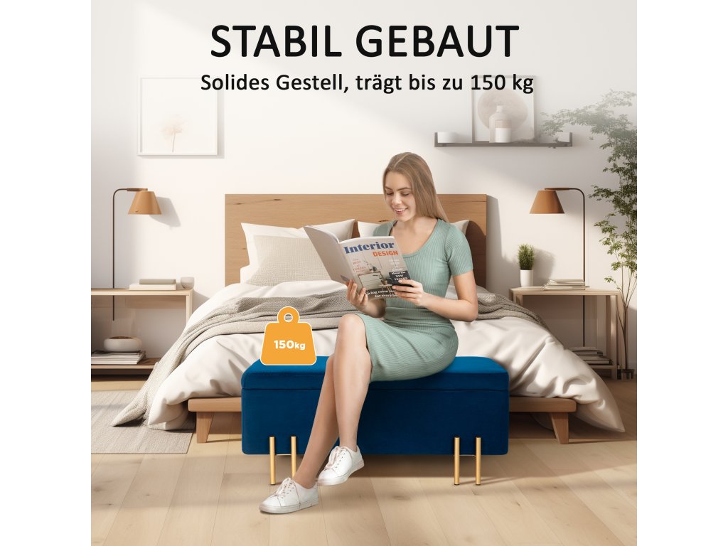 - Kvalitní a stabilní: Tato lavice s úložným prostorem je vyrobena z kvalitního dřevěného rámu a pozinkovaného kovu, který zajišťuje stabilitu. Lze ji použít jako podnožku, taburet k posteli a úložný box