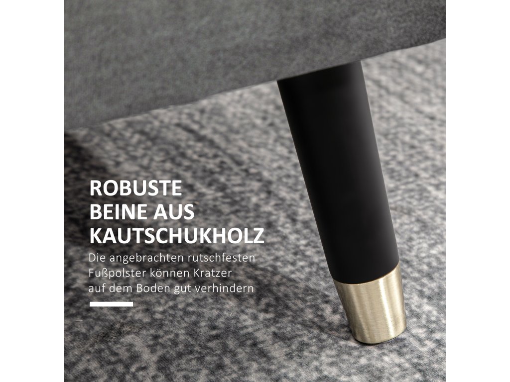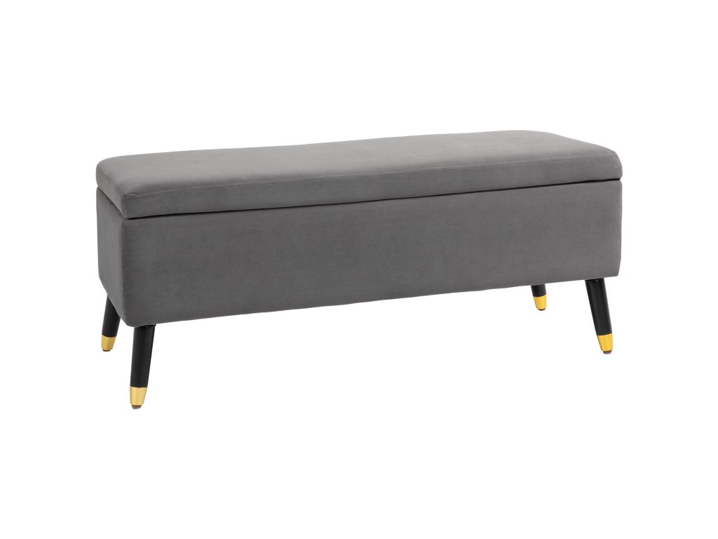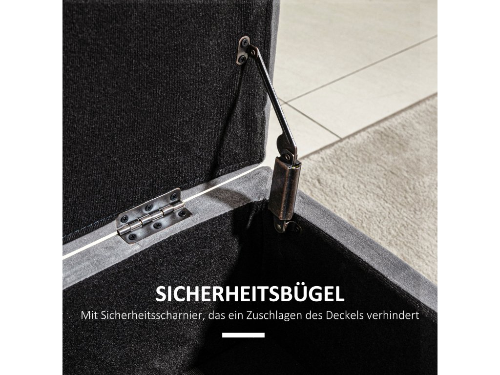 HOMCOM Lavice, čalouněná lavice s úložným prostorem, truhlicová lavice, kov, pěna, kaučukové dřevo, šedé uhlí, 110 x 43 x 45 cm