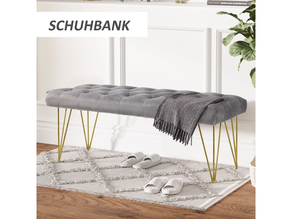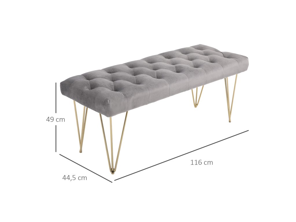 HOMCOM Lavice Čalouněná lavice Klavírní lavice Lavice na boty se sametovým vzhledem Lavice do postele Klavírní lavice do ložnice, obývacího pokoje, předsíně, kovová Šedá 116 x 44,5 x 49 cm