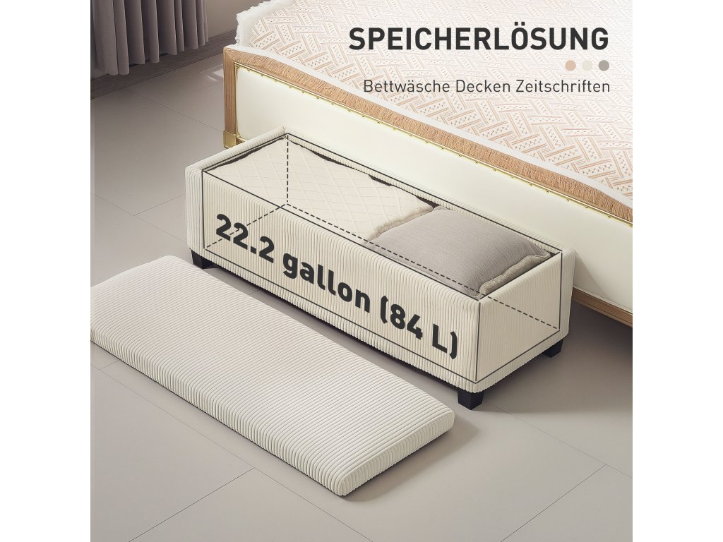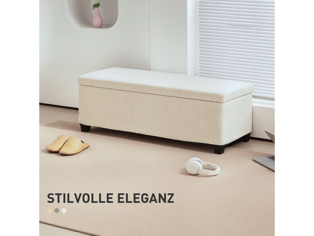 Poznejte kouzlo a multifunkčnost úložného otomanu HOMCOM, který je čalouněný luxusním manšestrem, který je prodyšný a šetrný k pokožce. Díky velkorysému úložnému prostoru o objemu 84 l do něj uložíte všechny nezbytnosti do ložnice a snadno se promění v elegantní okenní sedátko s úložným prostorem nebo pohodlné odkládací sedátko do jakéhokoli prostoru. Ideální pro moderní bydlení se stylovou funkčností.