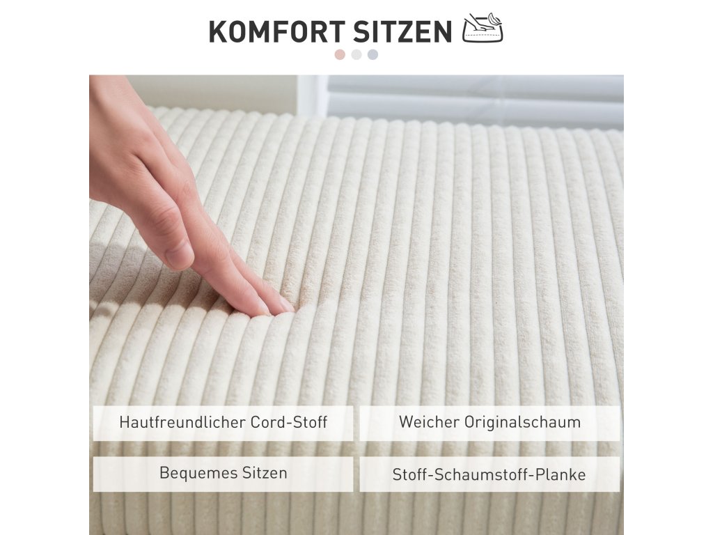 - ✔ Prodyšný manšestr šetrný k pokožce a měkká pěnová výplň poskytují pohodlné sezení