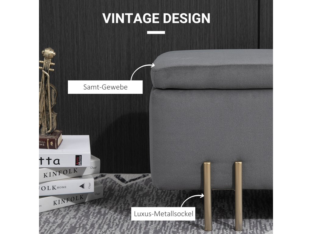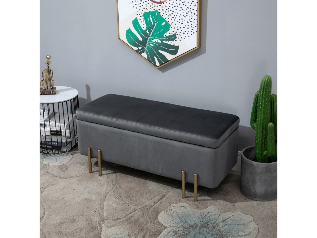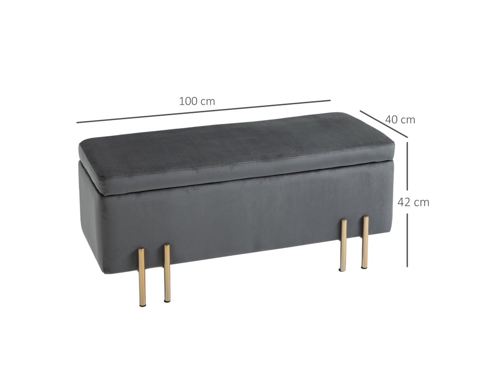 HOMCOM Lavice s úložným prostorem Čalouněná lavice se sametovým vzhledem, sedací truhla s kovovými nohami, truhla lavice do obývacího pokoje ložnice předsíně 100 x 40 x 42 cm, tmavě šedá barva
