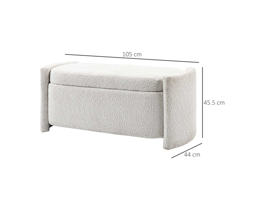 - Rozměry čalouněné lavice: 105L x 44W x 45,5H cm. Vnitřní rozměry: 87Š x 34H x 28V cm. Maximální zatížení: 150 kg. Nutná montáž