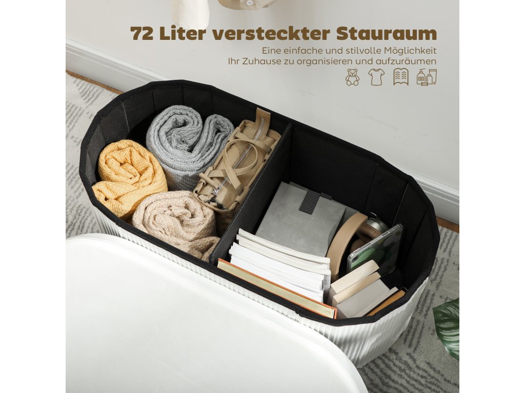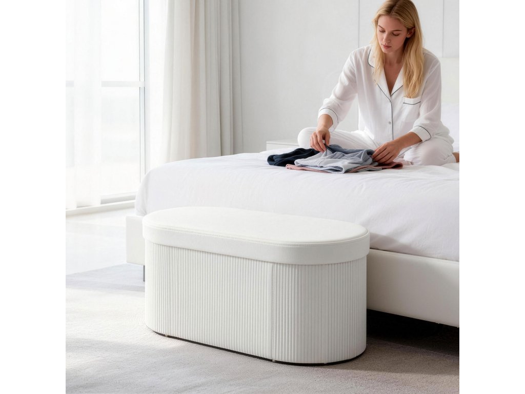 - Dotek pohodlí: Hustá sametová tkanina a podpůrný pěnový polštář truhly zajišťují mimořádně pohodlné sezení - ideální pro vyzutí bot po dlouhém dni.