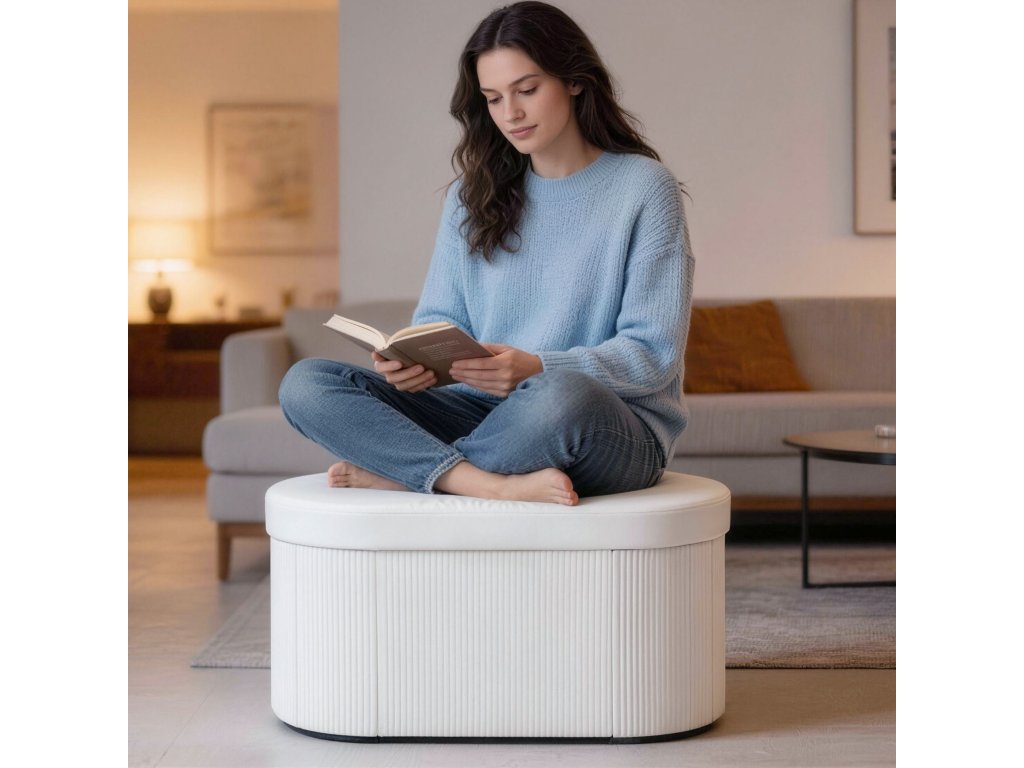 - ✔ Tato všestranná lavice s úložným prostorem slouží jako podnožka, další místo k sezení nebo dekorativní prvek