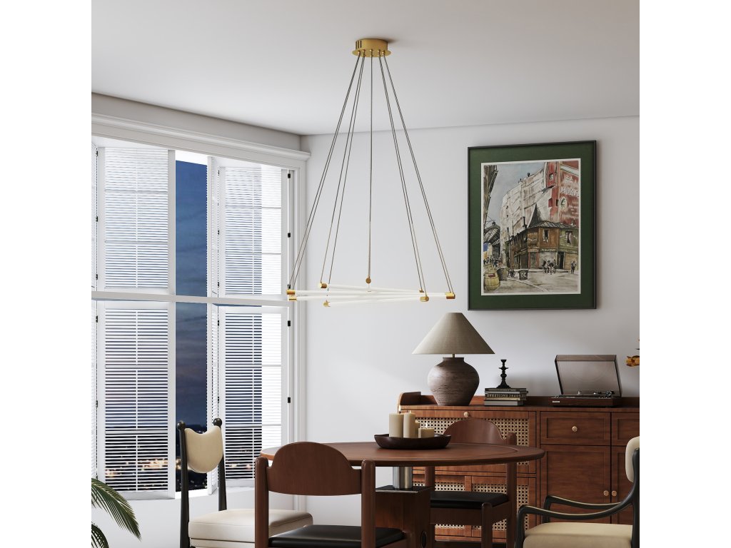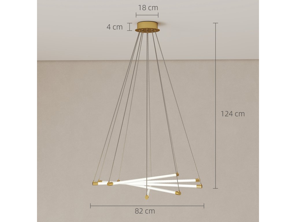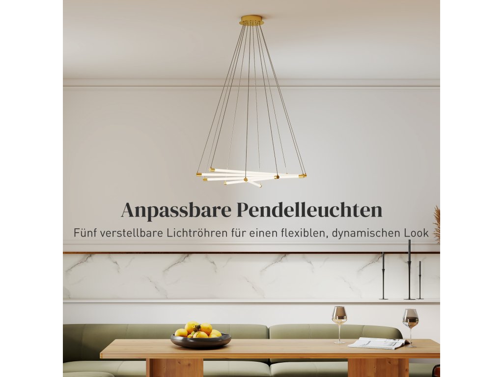 - Flexibilní design s pěti světly: Pět přizpůsobitelných světelných trubic závěsného svítidla lze měnit podle nálady a příležitosti, což vnese dynamický nádech do každodenní atmosféry vašeho bydlení