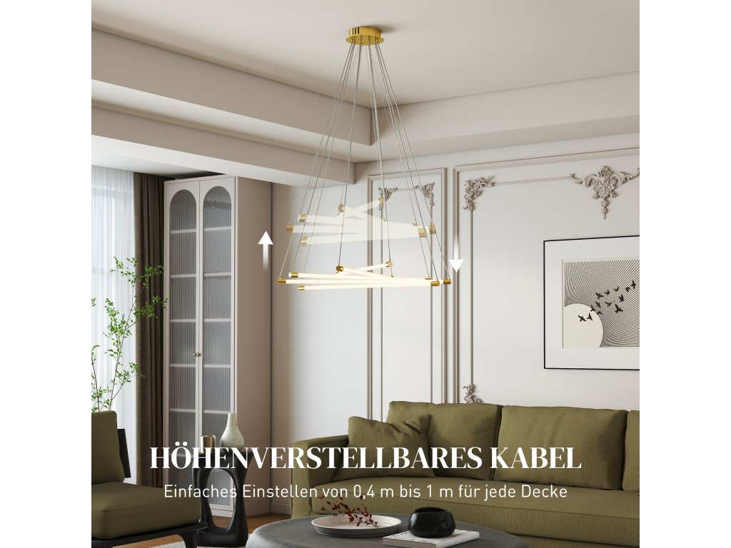 HOMCOM LED stropní svítidlo, 50W, 5 nastavitelných světelných trubic, přizpůsobitelné, stropní svítidlo do obývacího pokoje, jídelny, kuchyně, zlatá + bílá