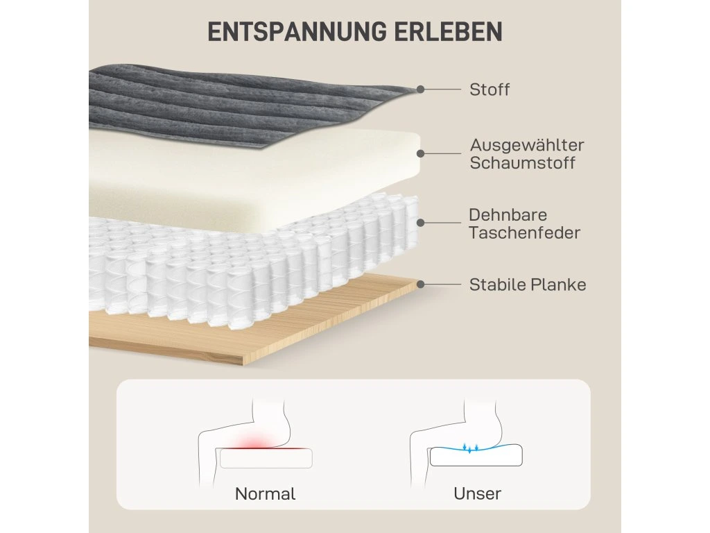 ✔ Taštičkové pružiny a silná pěna poskytují měkkost jako oblak a trvalou oporu