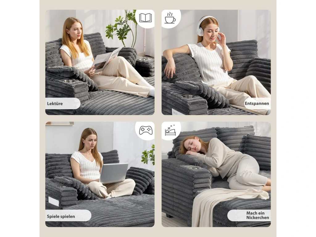 Navrženo pro zábavu: Integrované držáky na nápoje v obou loketních opěrkách udržují nápoje a občerstvení snadno po ruce. Vaše rozkládací pohovka se stane útulným středobodem pro uvolněnou zábavu, ideální pro nerušené filmové večery nebo herní sezení.