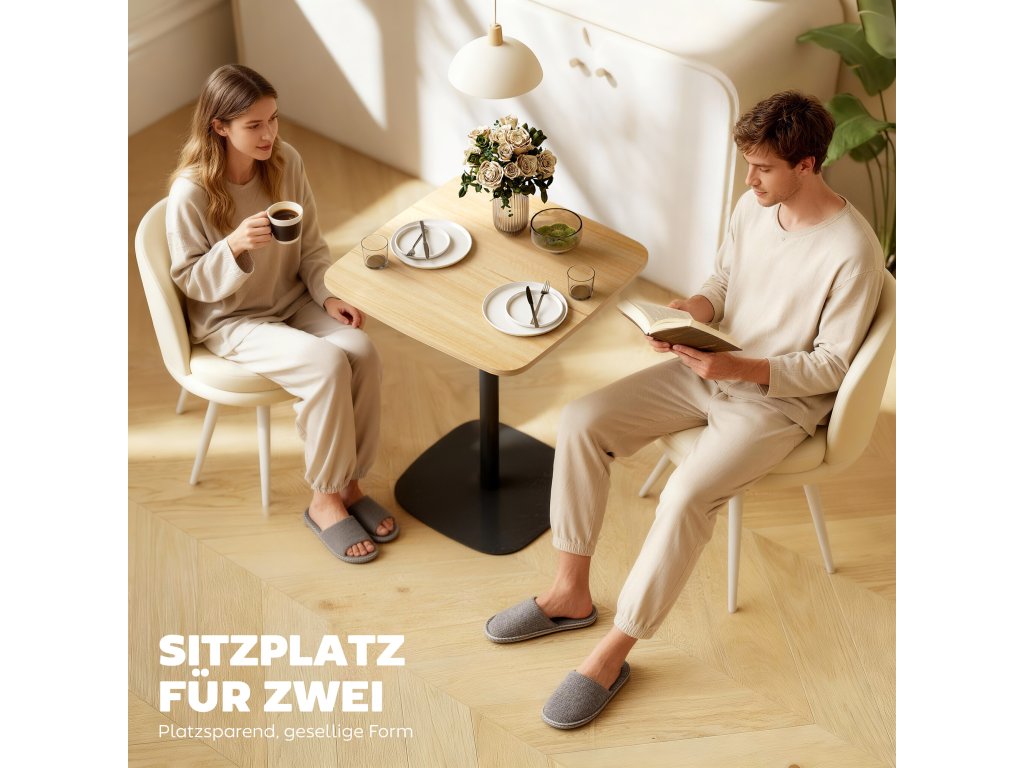 - Malý prostor, velký dojem: čtvercový kuchyňský stůl pro dva o průměru 60 cm promění váš malý kout v útulné místo pro intimní večeře, pohodové chvíle na balkoně nebo povídání u kávy. Kompaktní, ale plný šarmu