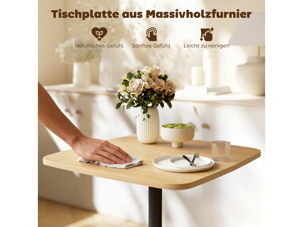 - Elegantní organizace: jídelní stůl s dýhou z masivního dřeva vytváří hřejivou atmosféru a robustní strukturu. Rozsypané věci, drobky a nepořádek? Hladký lakovaný povrch je v mžiku čistý. Zaoblené rohy zajišťují bezpečnost pro děti