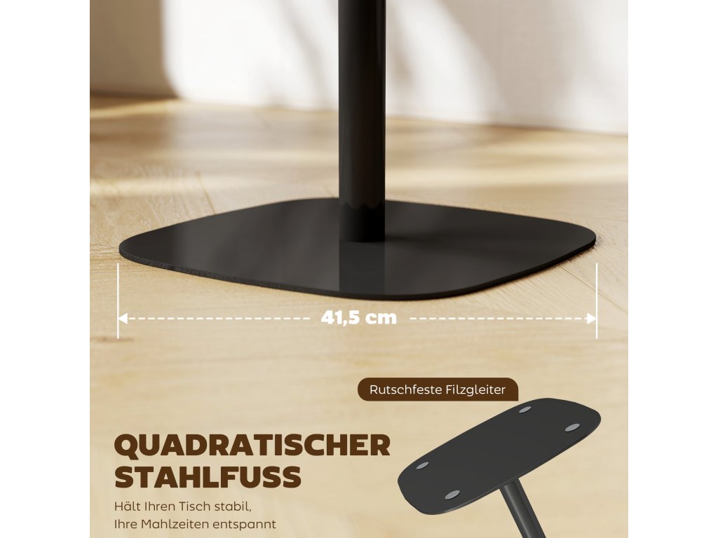 - Stabilní základna, stabilní pohodlí: Díky čtvercové ocelové základně o průměru 41,5 cm a měkkým protiskluzovým plstěným podložkám stojí tento jídelní stůl pevně na jakémkoli povrchu, aniž by se kymácel! Užijte si dostatek prostoru pro nohy, abyste si mohli odpočinout a natáhnout se