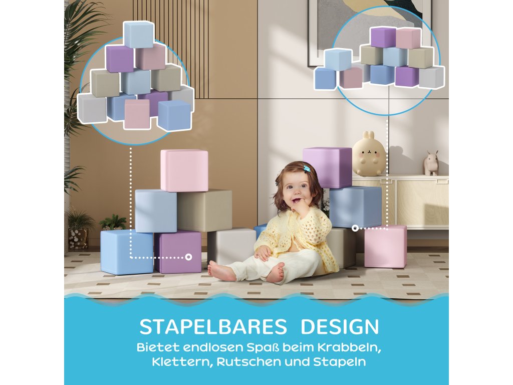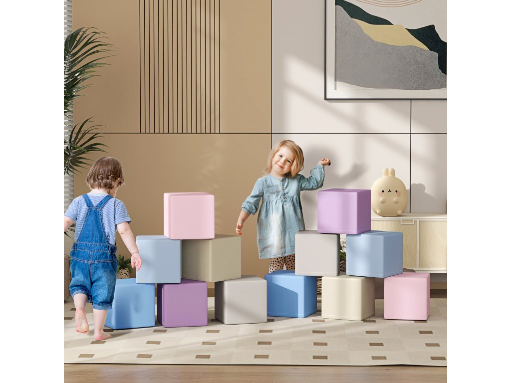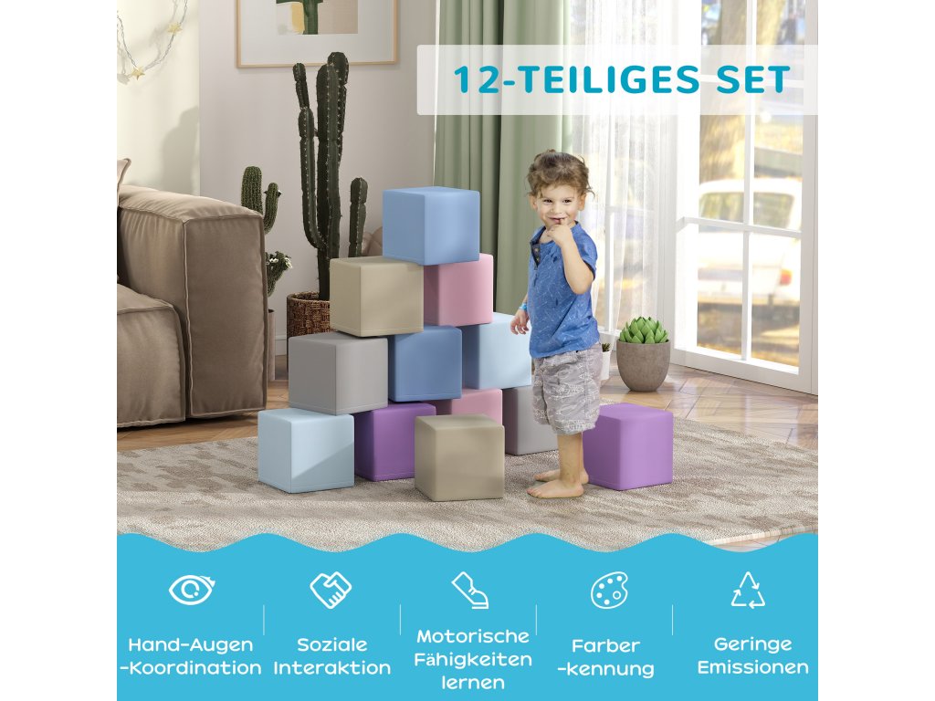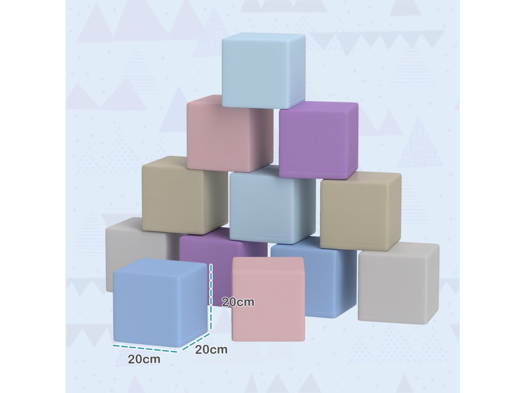 HOMCOM měkké stavební kostky, 12 kostek á 20 x 20 x 20 cm, snadná údržba, bezpečné pro děti, pro 1-3 roky, imitace kůže