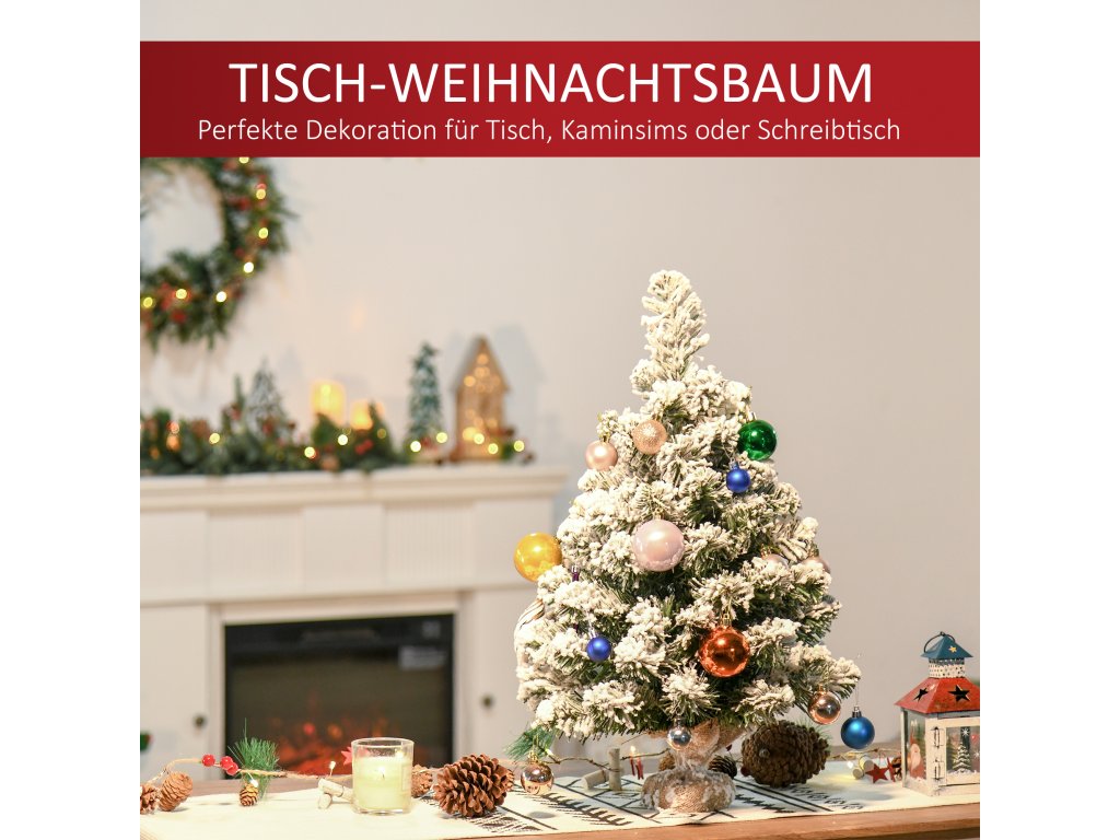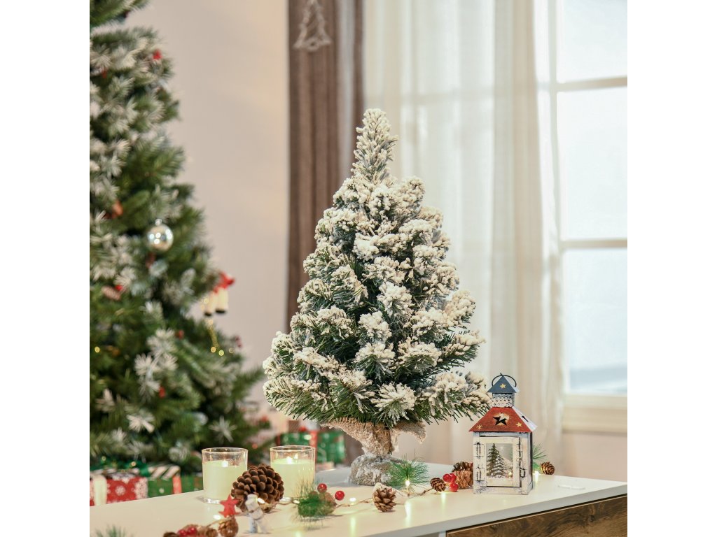 HOMCOM Mini umělý vánoční stromek 60 cm umělý vánoční stromek se sněhem, 67 hrotů cementový podstavec pro vnitřní kanceláře