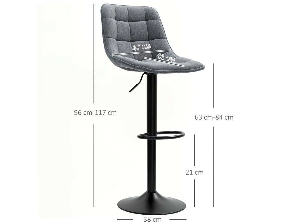 Užijte si prvotřídní pohodlí s našimi dvěma barovými židlemi HOMCOM s měkkým čalouněním pro pohodlné sezení. Barové stoličky jsou výškově nastavitelné a otočné o 360°. Jejich práškově lakovaná ocelová podnož s gumovým kroužkem zajišťuje stabilitu a ochranu podlahy. Jsou ideální pro kuchyňské ostrůvky nebo snídaňové bary a vnesou do vašeho prostoru moderní eleganci.