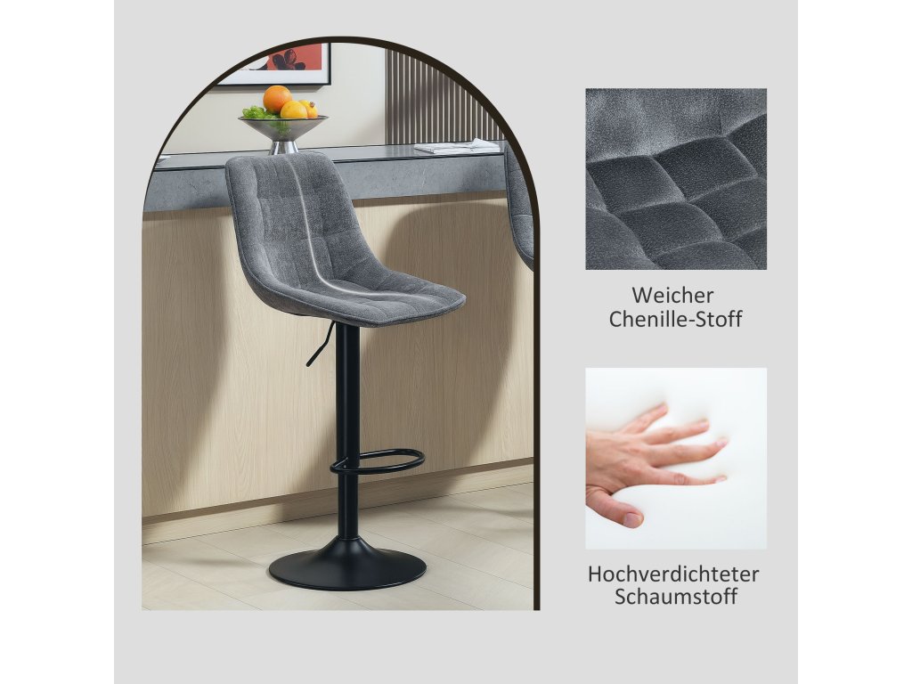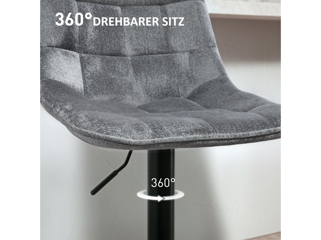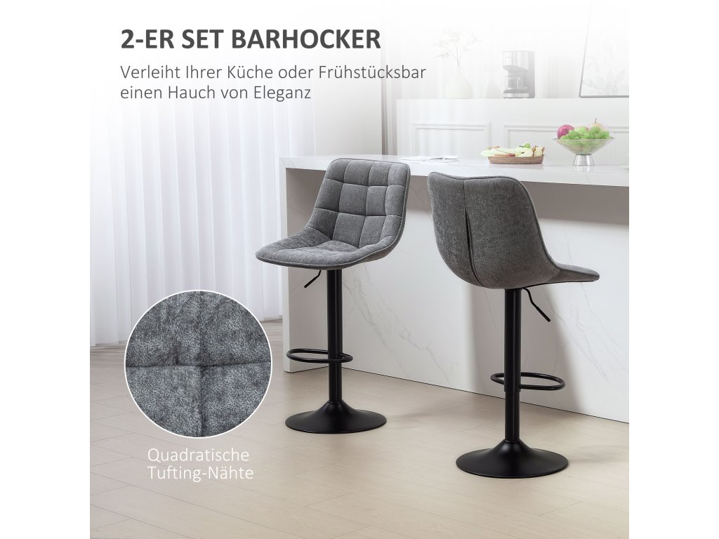 HOMCOM Moderní barová židle, sada 2 otočných barových židlí s opěradlem, výškově nastavitelná, s podnožkou, čalouněná, tmavě šedá