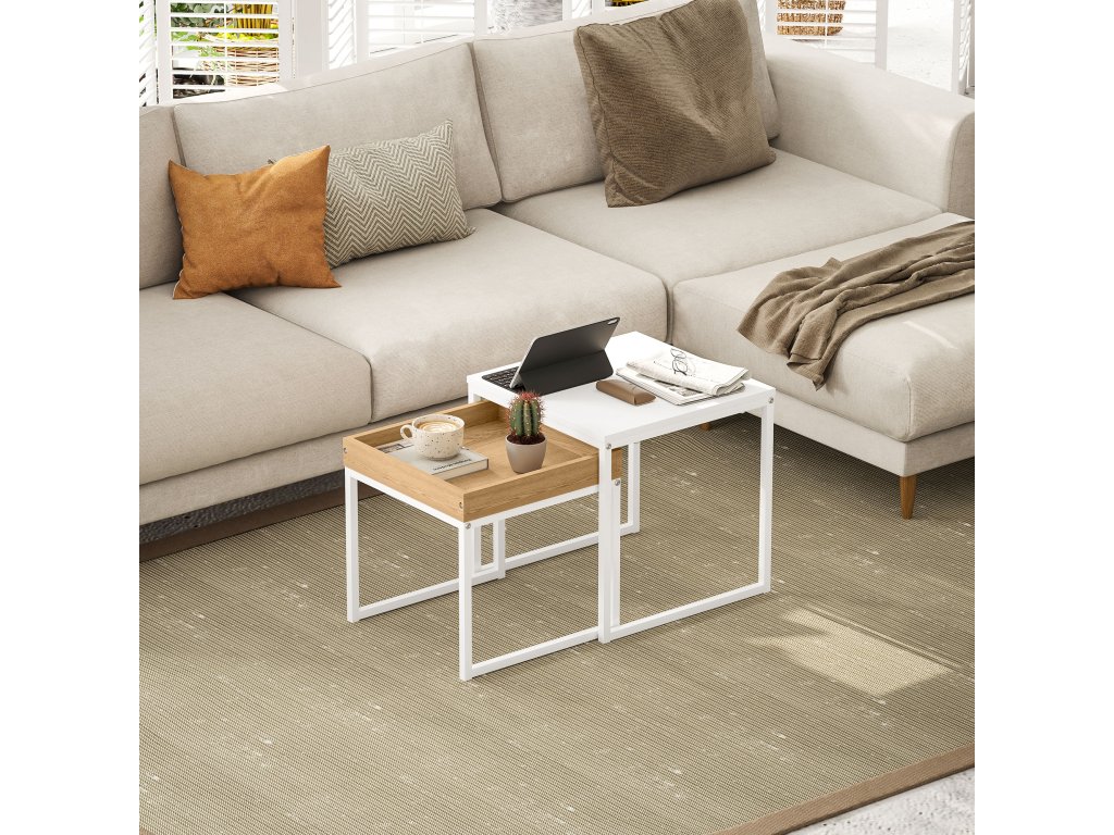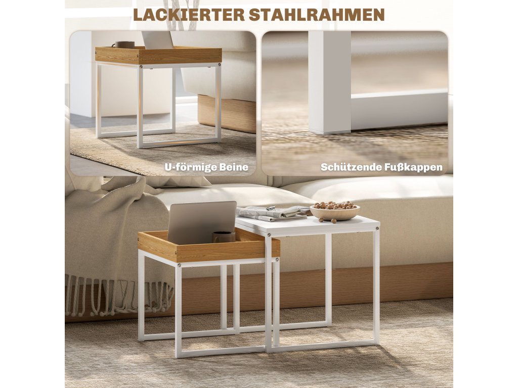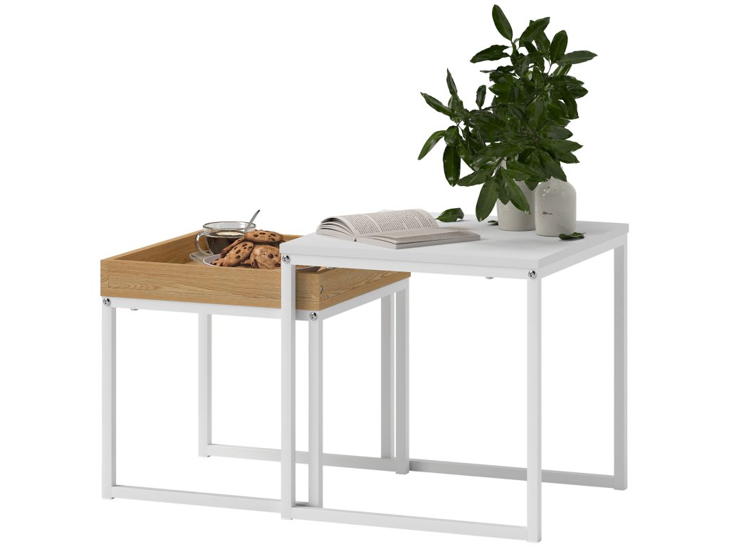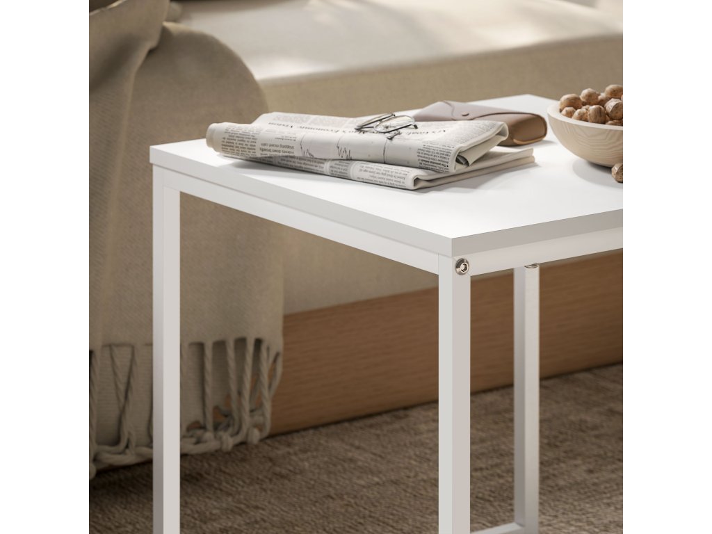 HOMCOM Moderní konferenční stolek, sada 2 rozkládacích stolků, pro malé místnosti, čtvercový, MDF, kov, bílá barva