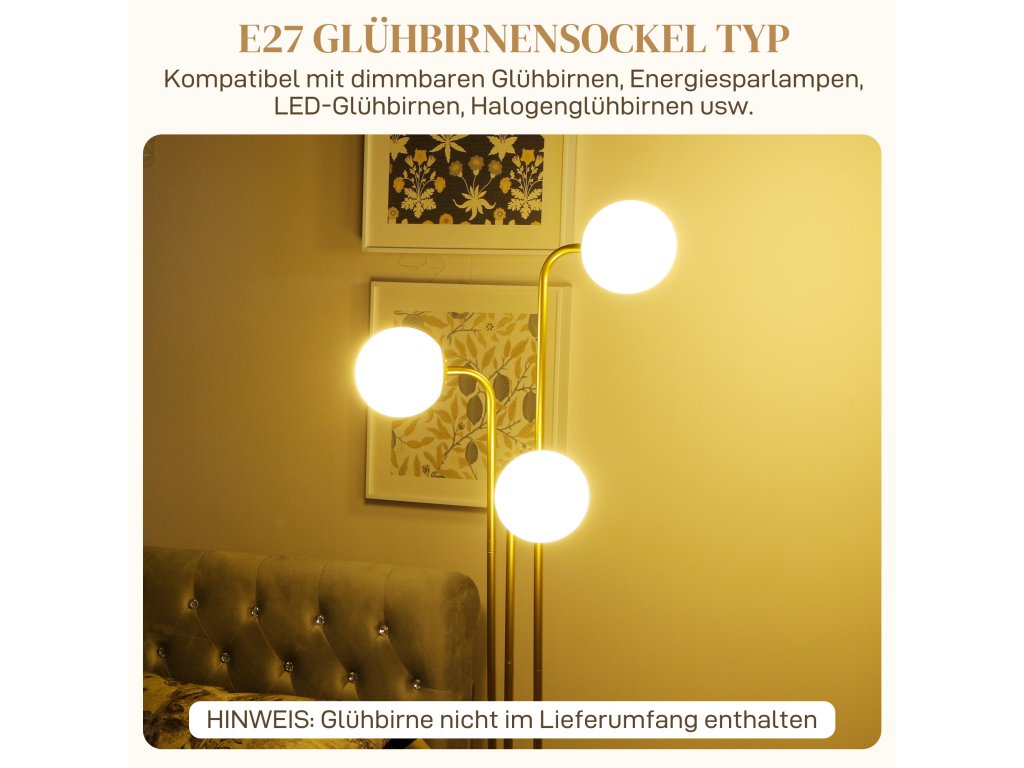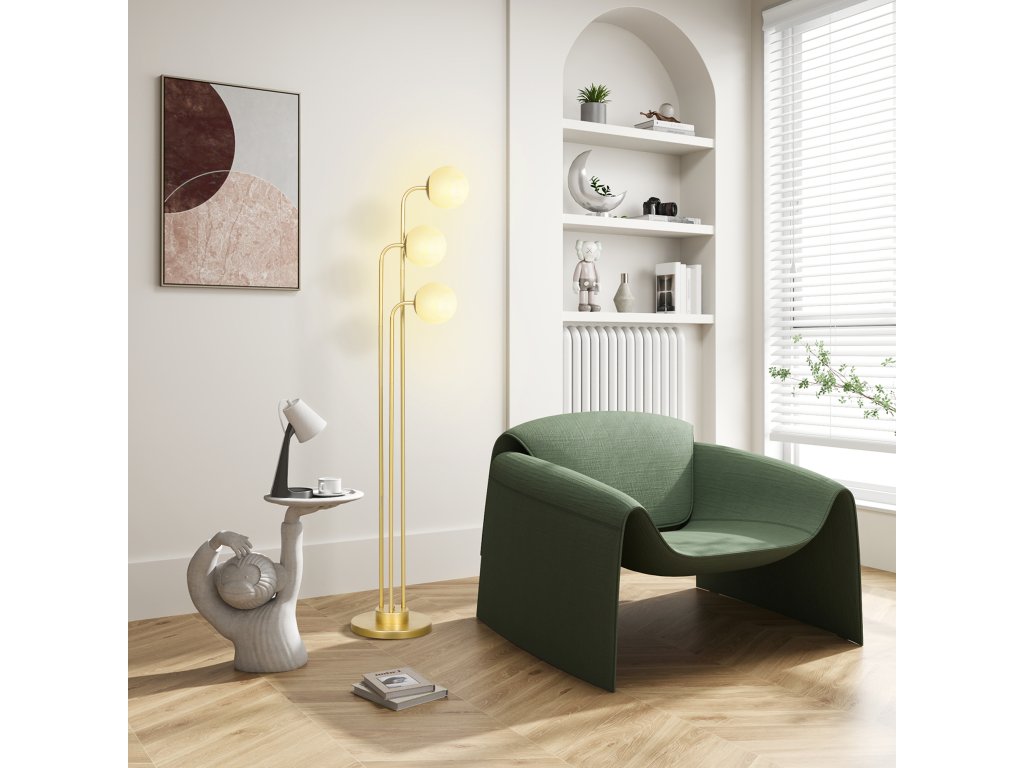 - Moderní styl: Dodejte svému domovu nádech elegance s touto moderní designovou stojací lampou. Rám ve zlaté barvě a bílá matná kulovitá stínidla dokonale zapadnou do každého prostředí