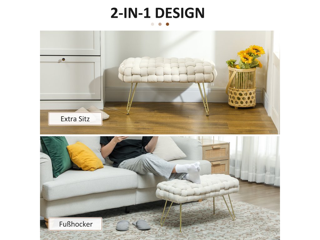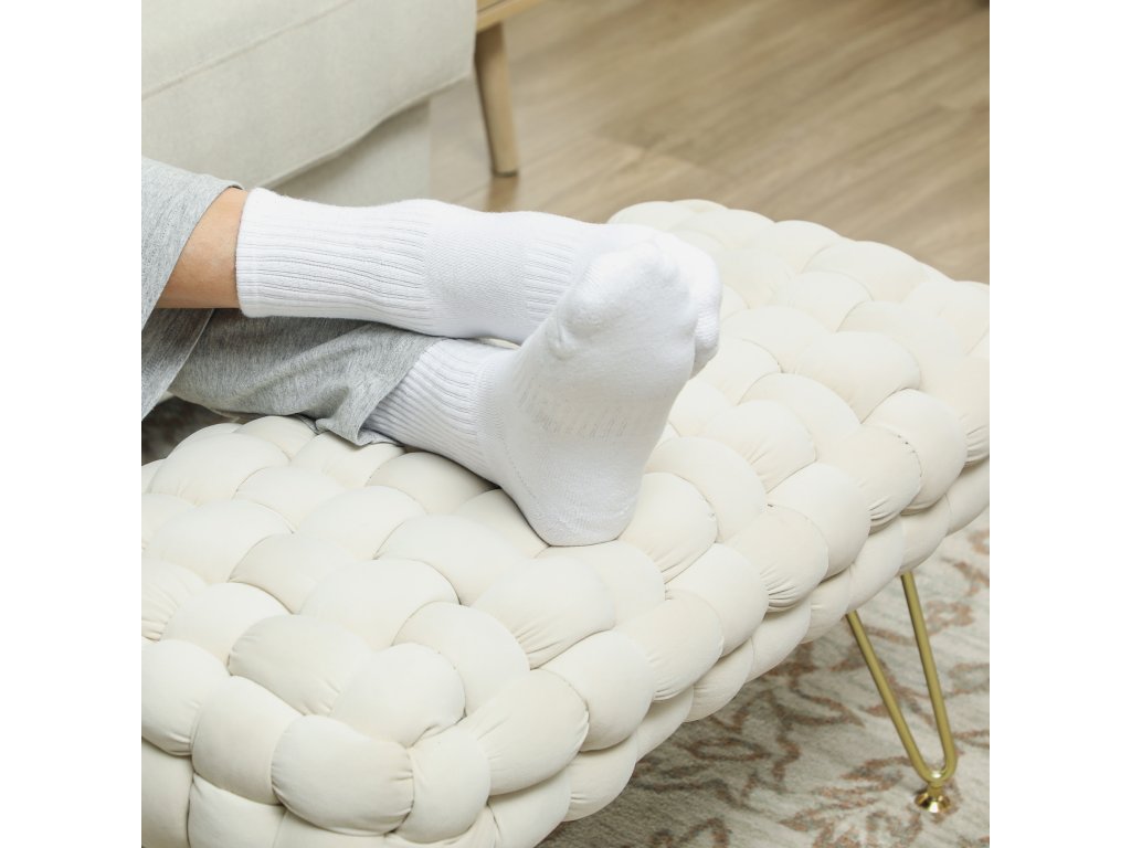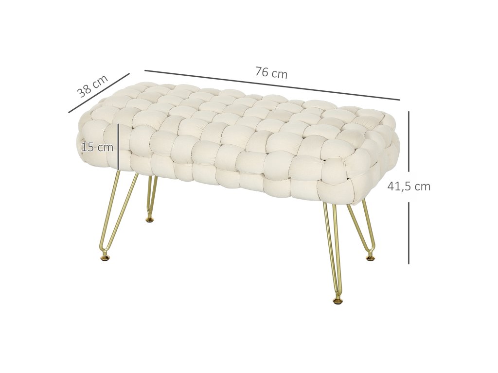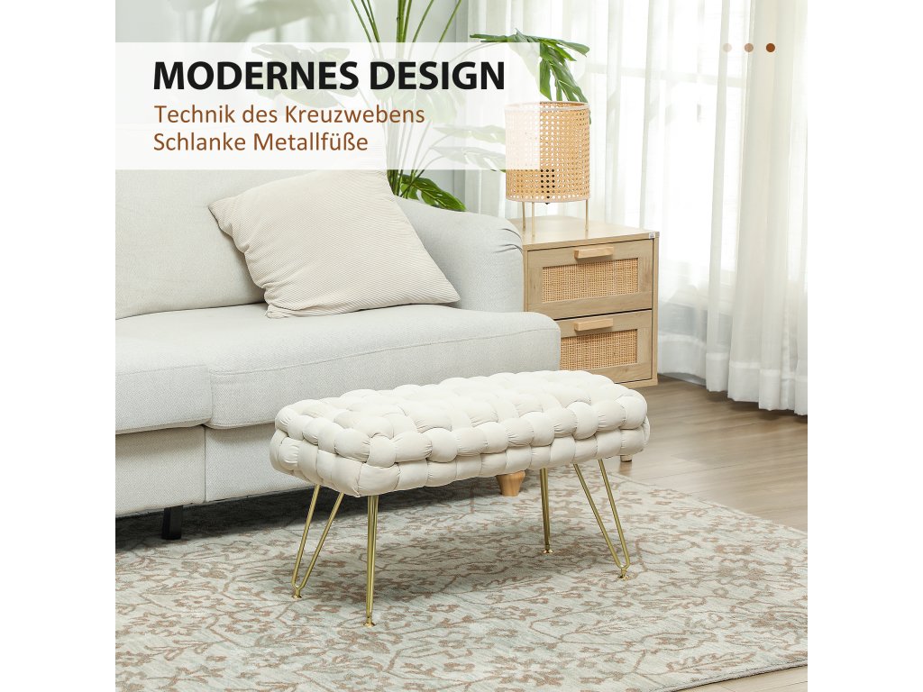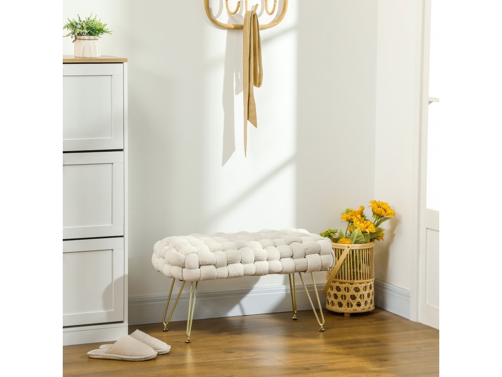 HOMCOM Moderní taburet s kovovými nohami, čalouněný sedák, do obývacího pokoje, ložnice, předsíně, krémově bílý