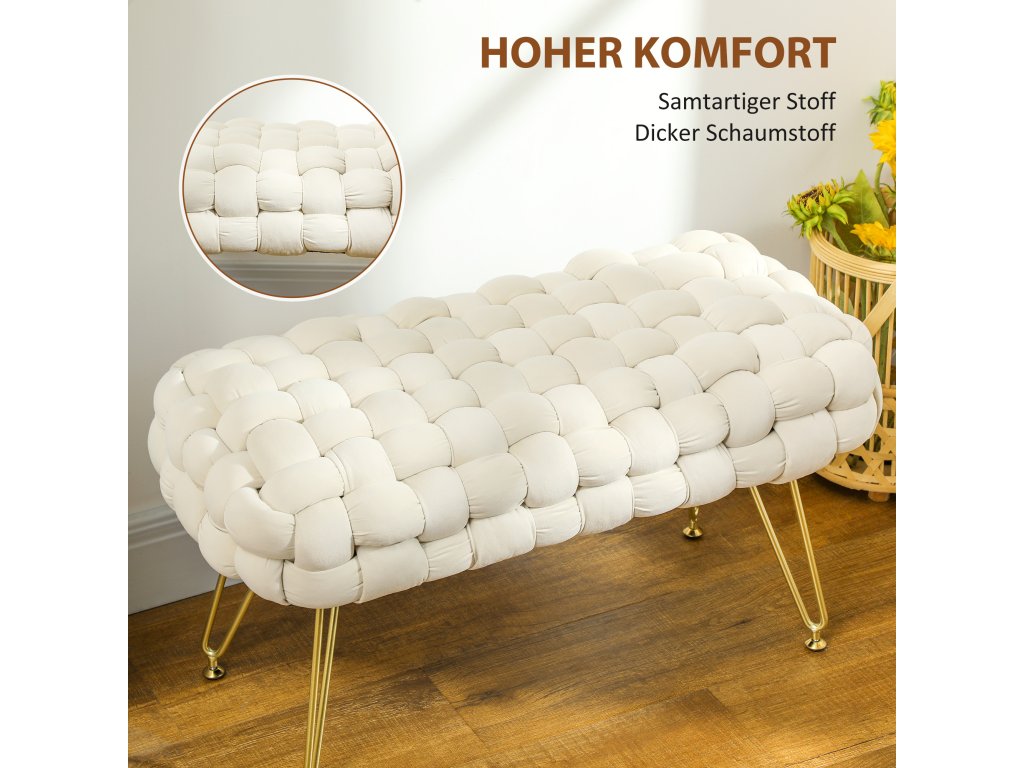 Vylepšete svůj domov stylově s čalouněným taburetem HOMCOM. Tento taburet v sametovém vzhledu s křížovou vazbou a elegantními kovovými nohami se skvěle hodí jako taburet k toaletnímu stolku, jako lavice do ložnice nebo jako další místo k sezení v obývacím pokoji.