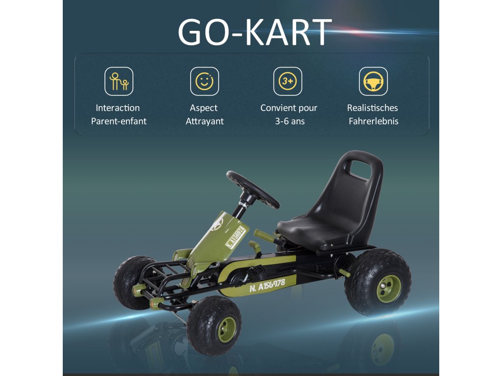 HOMCOM Motokára šlapací auto šlapací vozidlo s ruční brzdou, rychlostí vpřed a vzad, dětské vozidlo Kettcar šlapací vozidlo s nastavitelným sedadlem pro děti 3-6 let, 99 x 65 x 56cm Zelená barva