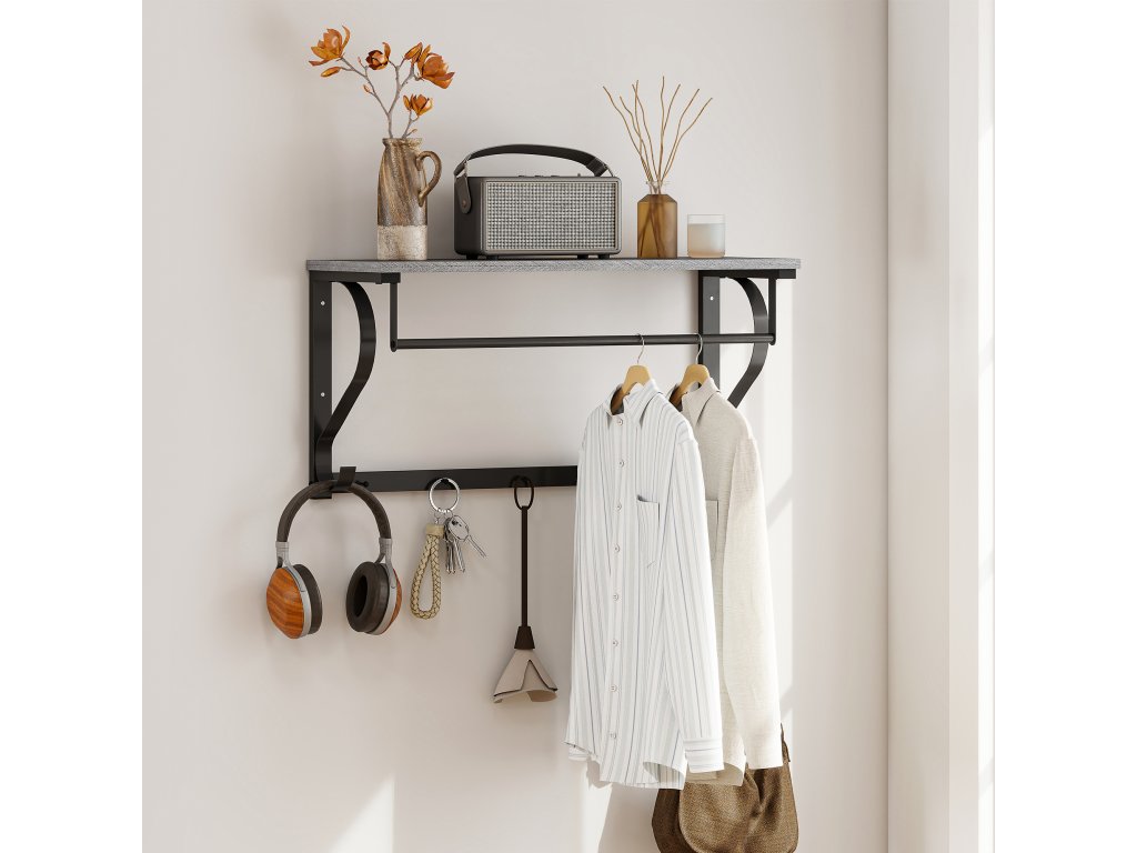 - ✔ Horní police nástěnného věšáku je ideální pro uložení klíčů, dekorací nebo předmětů pro každodenní použití