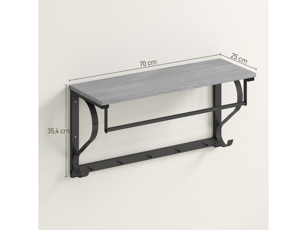HOMCOM Nástěnný věšák, háčky na kabáty, 5 háčků, horní police, univerzální, šedý
