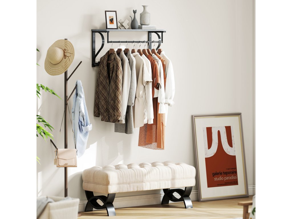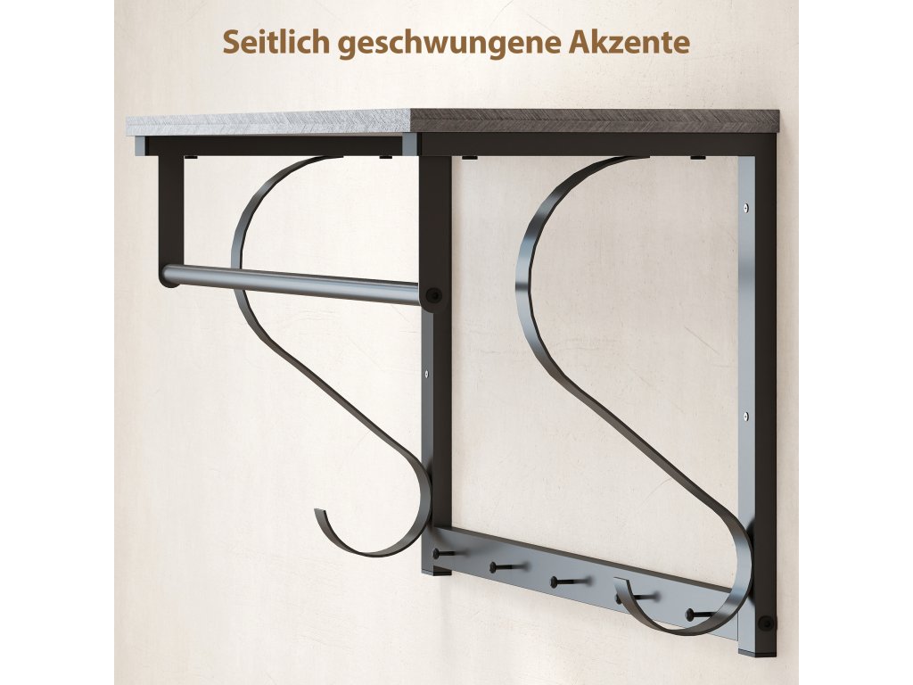 Je vaše chodba plná kabátů a tašek? V malých místnostech často panuje chaos, který ztěžuje každodenní život. S nástěnným věšákem HOMCOM můžete do svého prostoru vnést pořádek. Tento elegantní nástěnný věšák v industriálním designu s horní policí, tyčí na oděvy a pěti háčky zajistí maximální efektivitu a prostornou, harmonickou atmosféru.