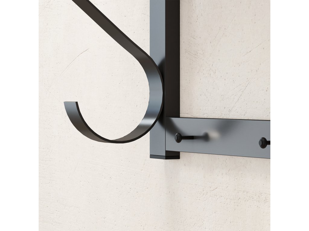 - ✔ Pět háčků pro zavěšení kabátů, tašek, klobouků a dalších věcí, které udržují pořádek v předsíni
