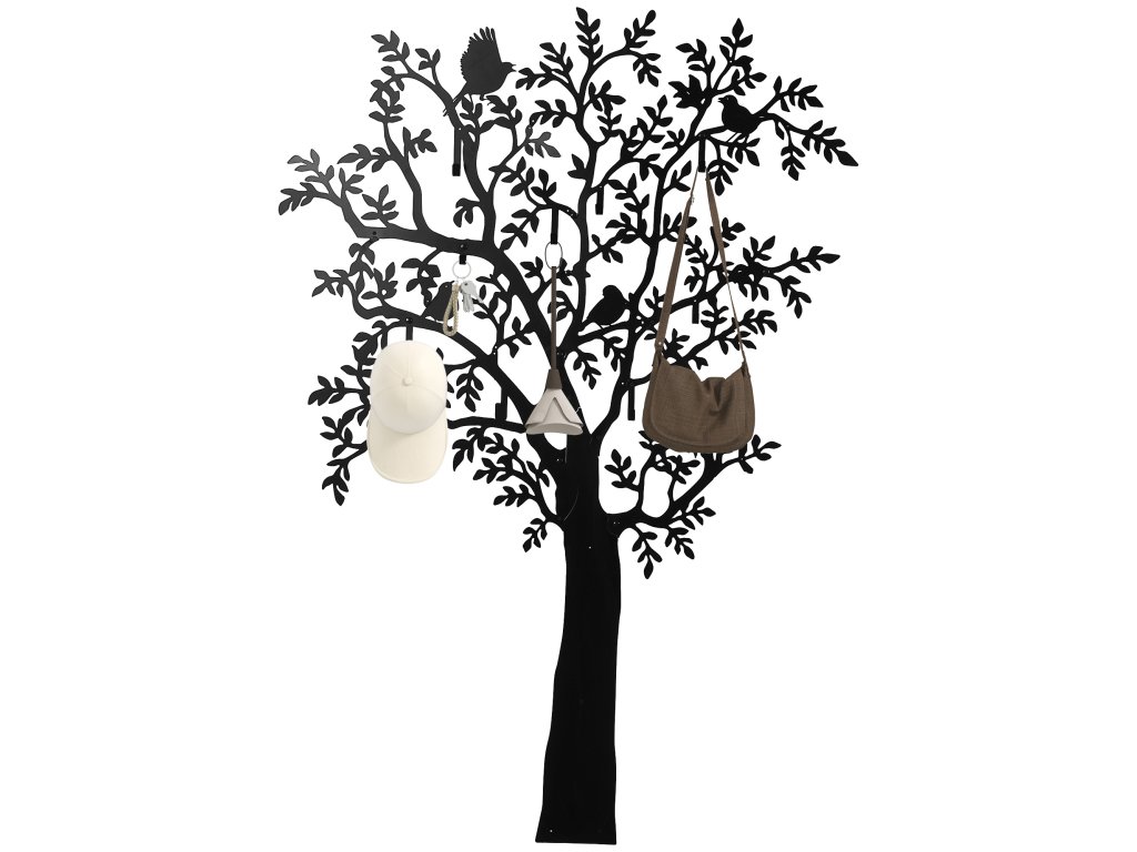 HOMCOM Nástěnný věšák, nástěnný háček na kabáty, design stromu s ptáky, černý