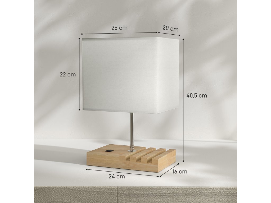 Vadí vám nepřehledný noční stolek a zamotané nabíjecí kabely? Noční lampička HOMCOM vám vrátí pořádek a klid. Díky portům USB-A/C a třem přihrádkám zajistí přehledné uložení a napájení vašich zařízení. Kombinace dřevěné základny stolní lampy a látkového stínidla promění váš pokoj v organizovanou oázu pohody.
