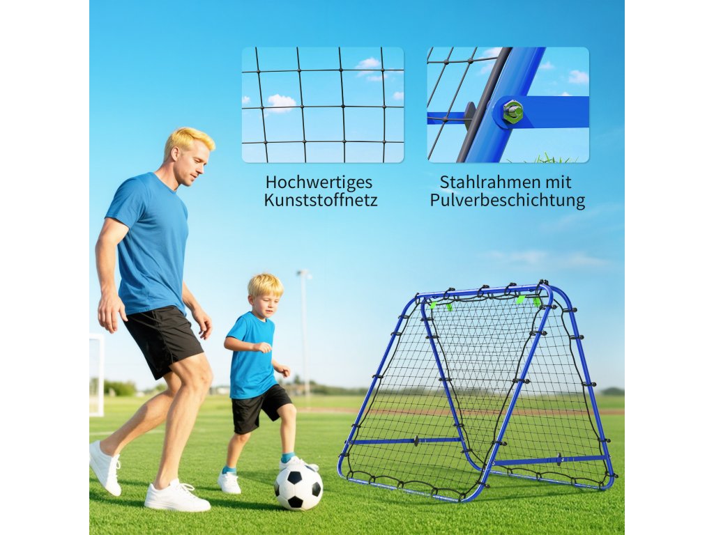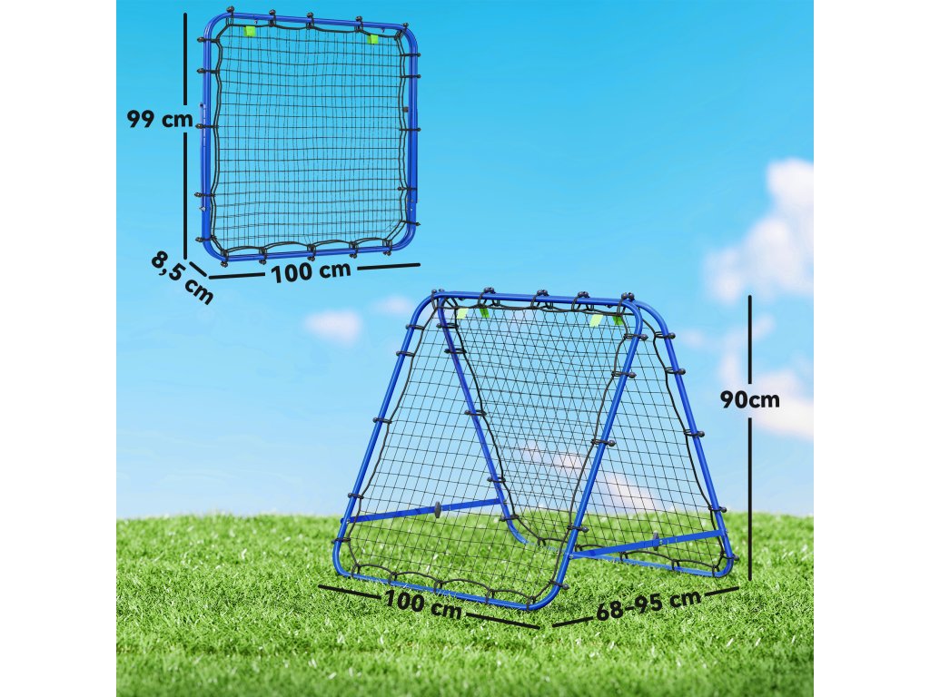 HOMCOM oboustranná odrazová stěna pro fotbal, nastavitelná odrazová stěna s 5 úhlovými polohami odrazové sítě, 100 x 68-95cm odrazová branka pro teenagery, odrazová stěna pro trénink házené, modrá barva