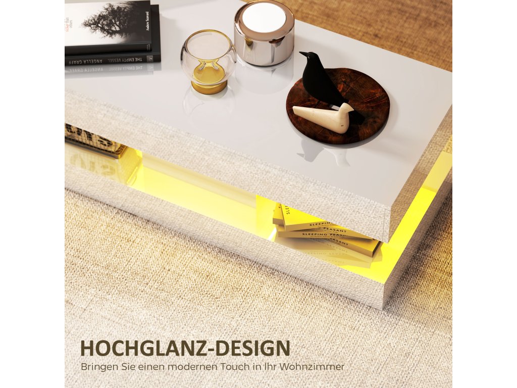 - Elegantní design ve vysokém lesku: Bílý povrch ve vysokém lesku a čisté linie tohoto stolku do obývacího pokoje doplní každý interiér a dodají vašemu domovu moderní nádech. Hladký povrch se navíc mimořádně snadno čistí