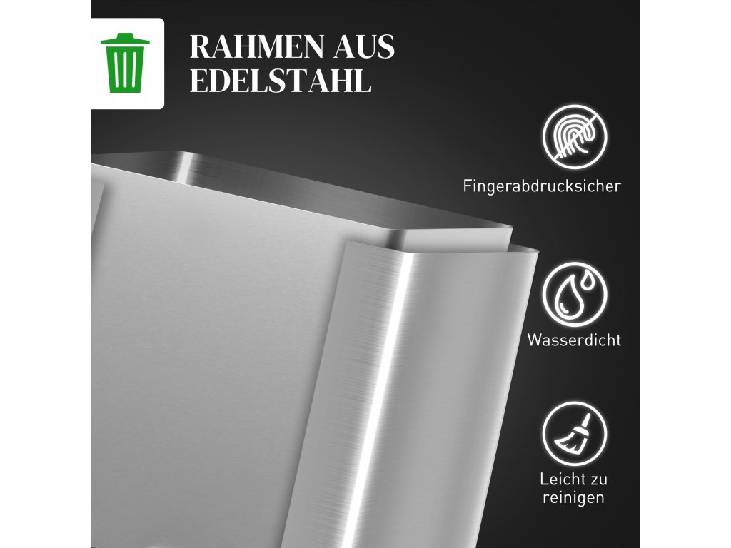 - Čistý vzhled: Díky nerezové oceli odolné proti otiskům prstů zůstane koš ve vaší kuchyni vždy čistý a elegantní.