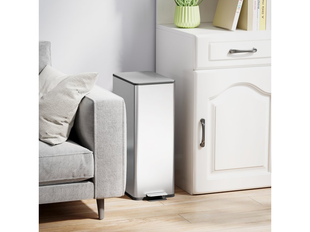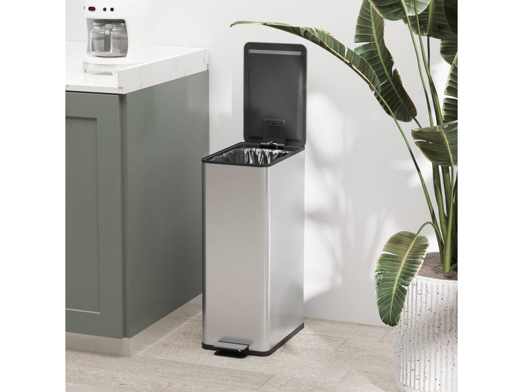 Udržujte svou kuchyň čistou a bez zápachu s odpadkovým košem HOMCOM 20 l s víkem! Mechanismus soft-close a uzávěr odolný proti zápachu zajišťují svěžest uvnitř. Tento robustní a stylový koš je vyroben z nerezové oceli odolné proti otiskům prstů a přináší do vaší kuchyně organizaci, styl a kvalitu. Praktický nášlapný pedál a vyjímatelný vnitřní koš usnadňují jeho používání a čištění. Dokonalá kombinace funkčnosti a moderního designu pro vaši domácnost.